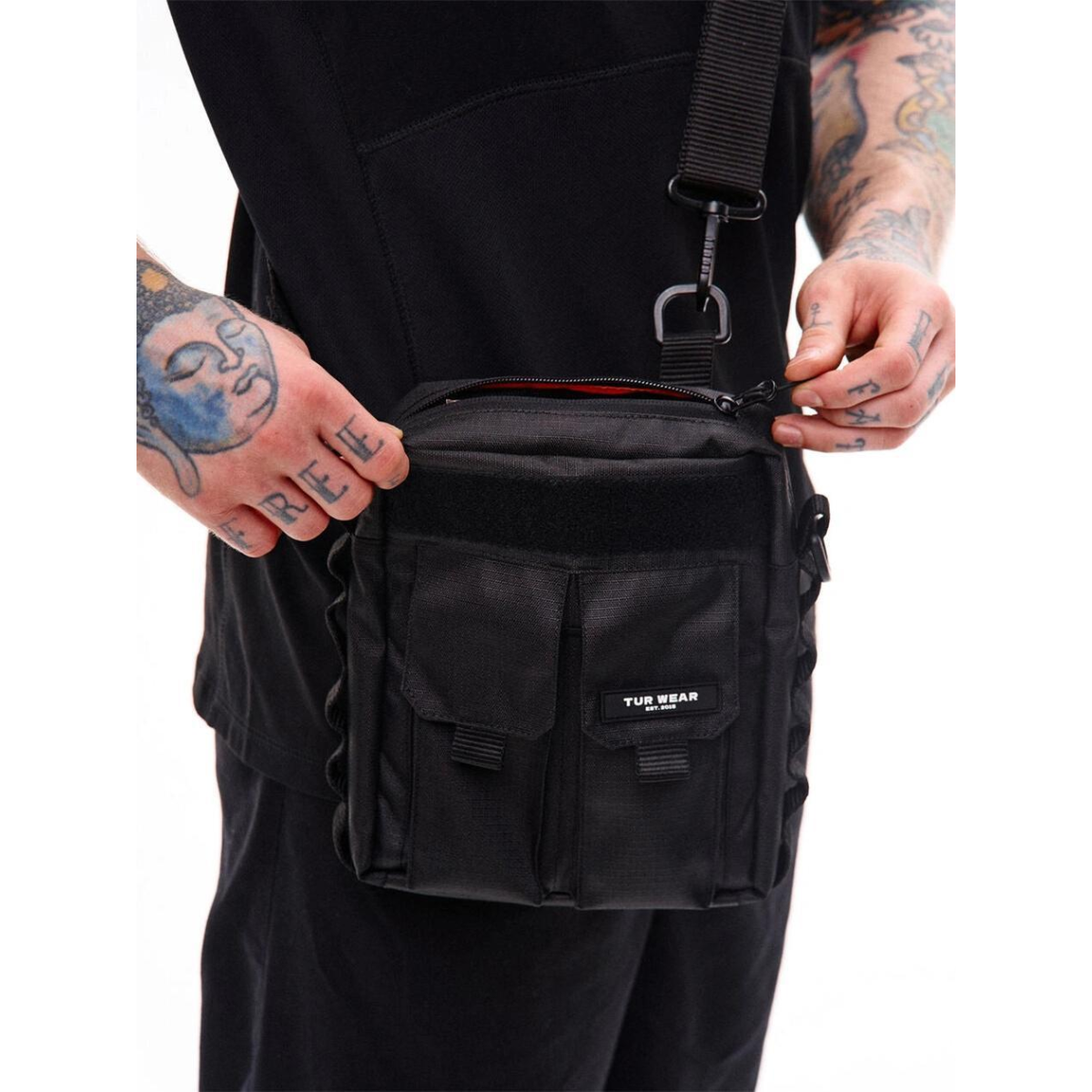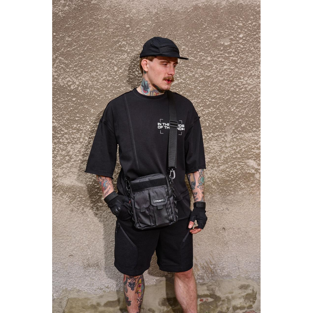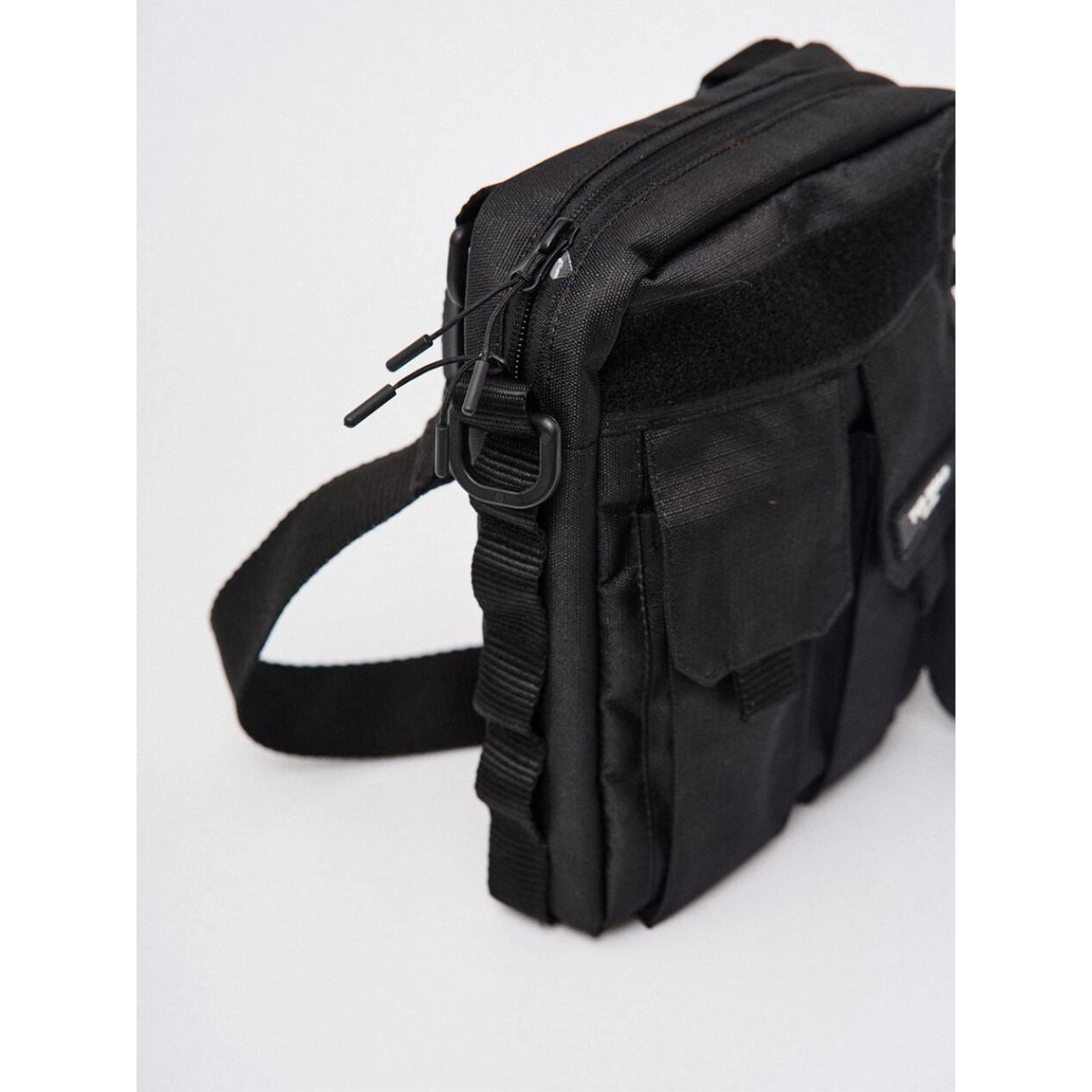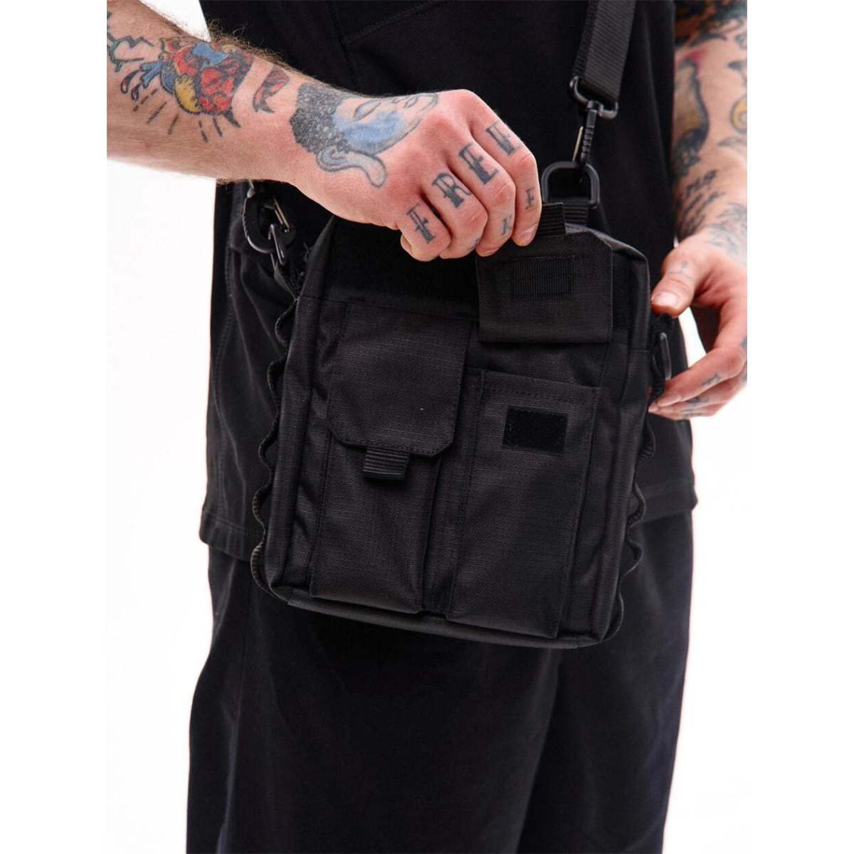 Сумка вертикального формату з двома кишенями на фронтальній частині для телефонів, з фірмовим гумовим логотипом на клапані лівої кишені. Над кишенями є велкро панель для персоналізації. Бокові стінки оснащені петлями МОЛЛЕ для кріплення карабінів. Сумка має два способи кріплення лямки: по боках і на спинці, що дає можливість підібрати зручний формат для різних задач. Лямка кріпиться на гачках-карабінах Woojin Plastic. Основний відділ з блискавкою та подвійним бігунком має карабін для ключів і чотири кишені для дрібниць, а також підходить для блокнота формату A5. На задній частині є додаткова кишеня з кнопкою. Виконана з міцного нейлонового ріпстопу, який стійкий до порізів та розривів.