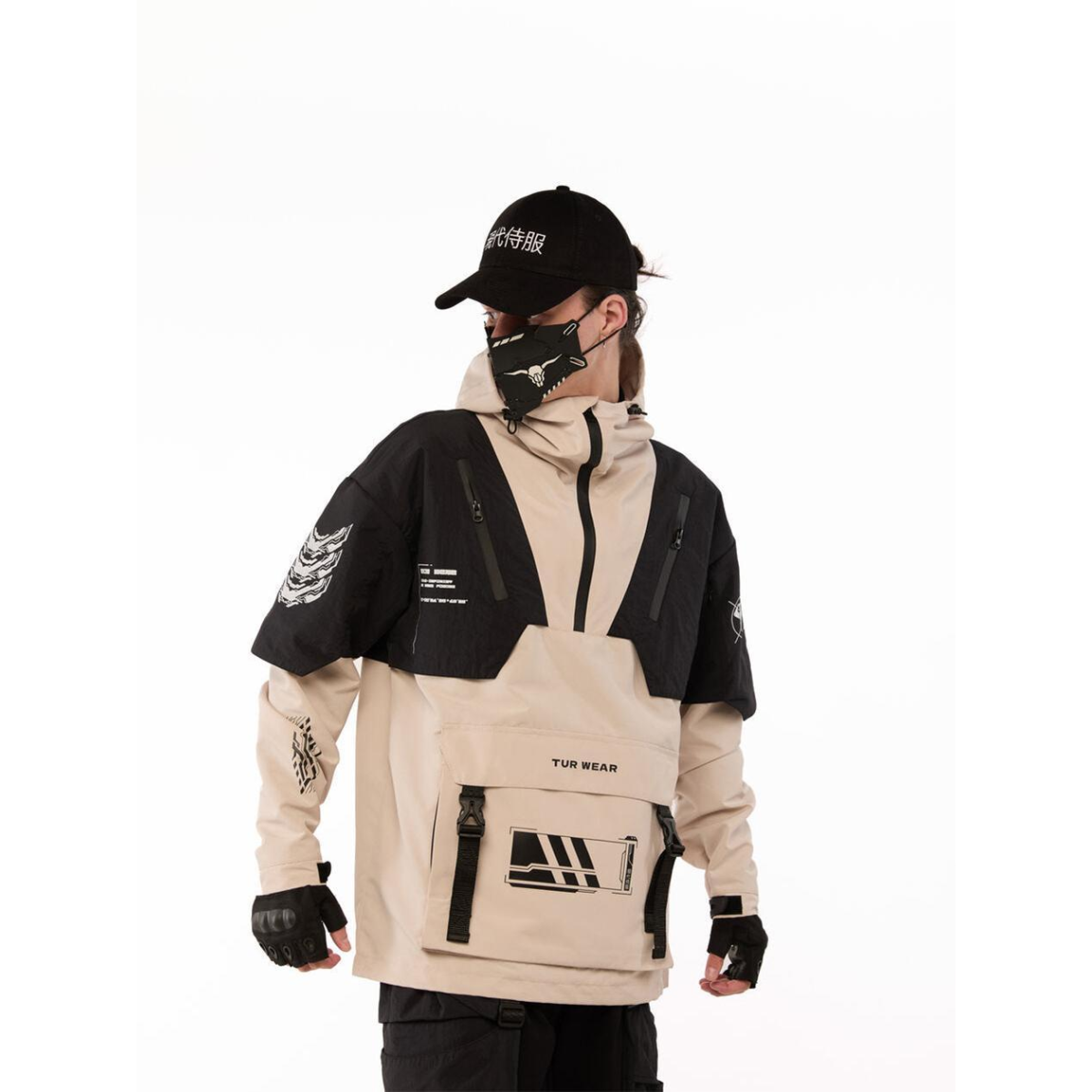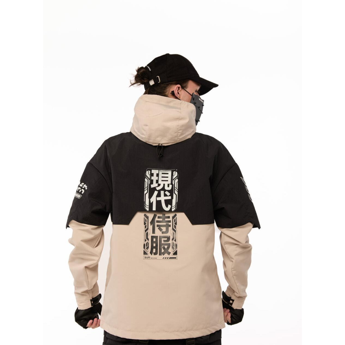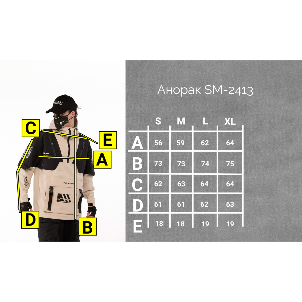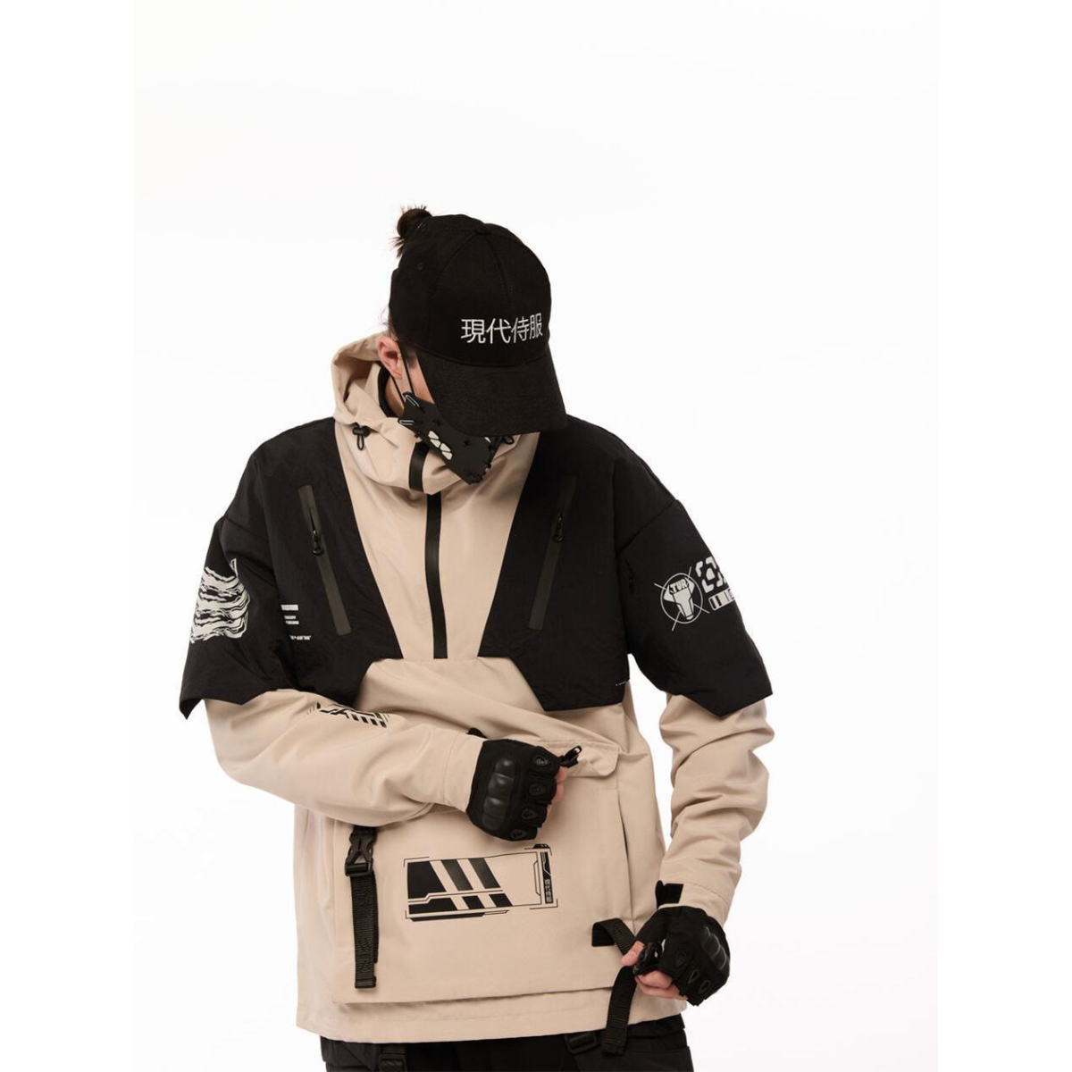 Анорак з принтами “SM-2413“, чорно-бежевий Розміри: S, M, L, XL