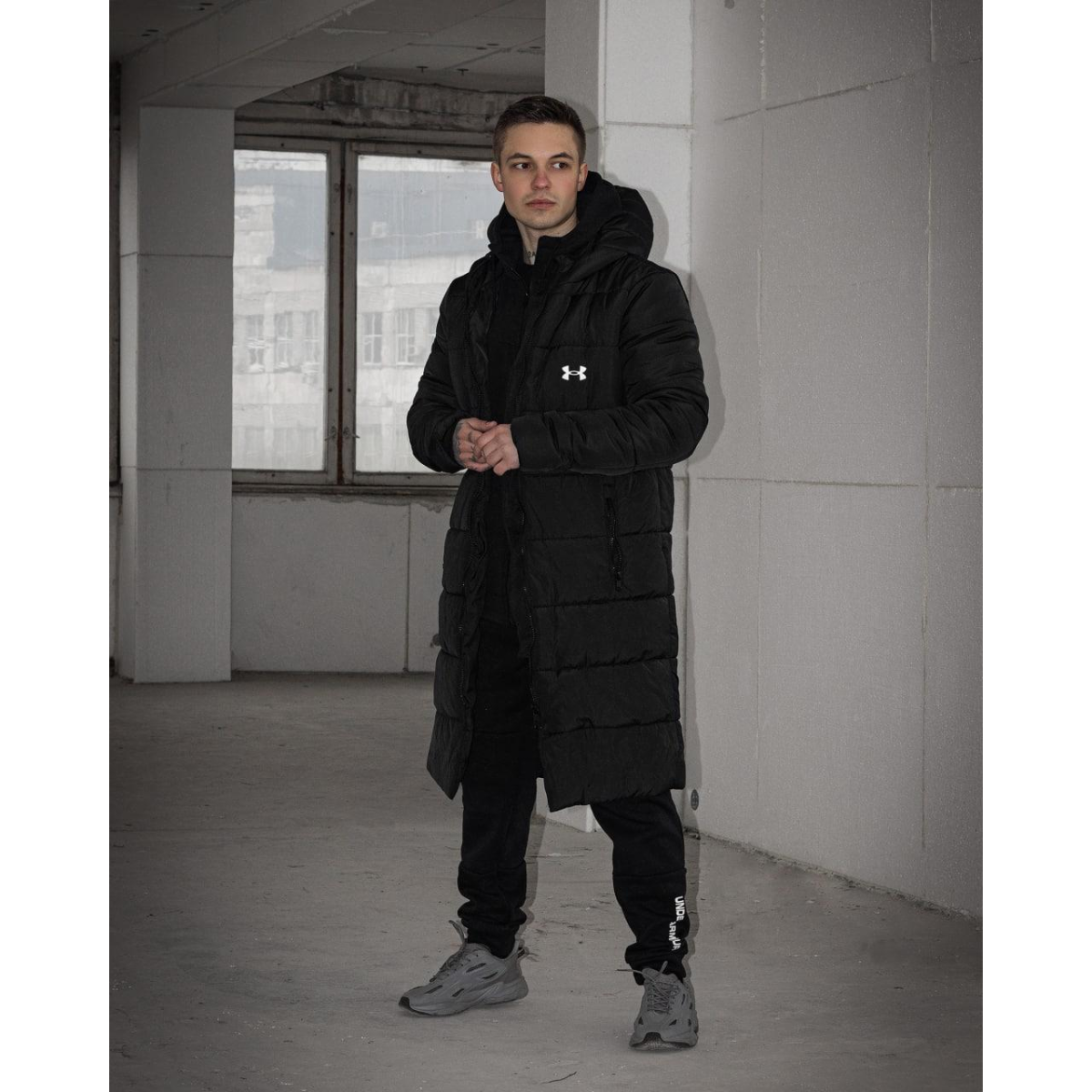 Зимовий подовжений пуховик чорний UA