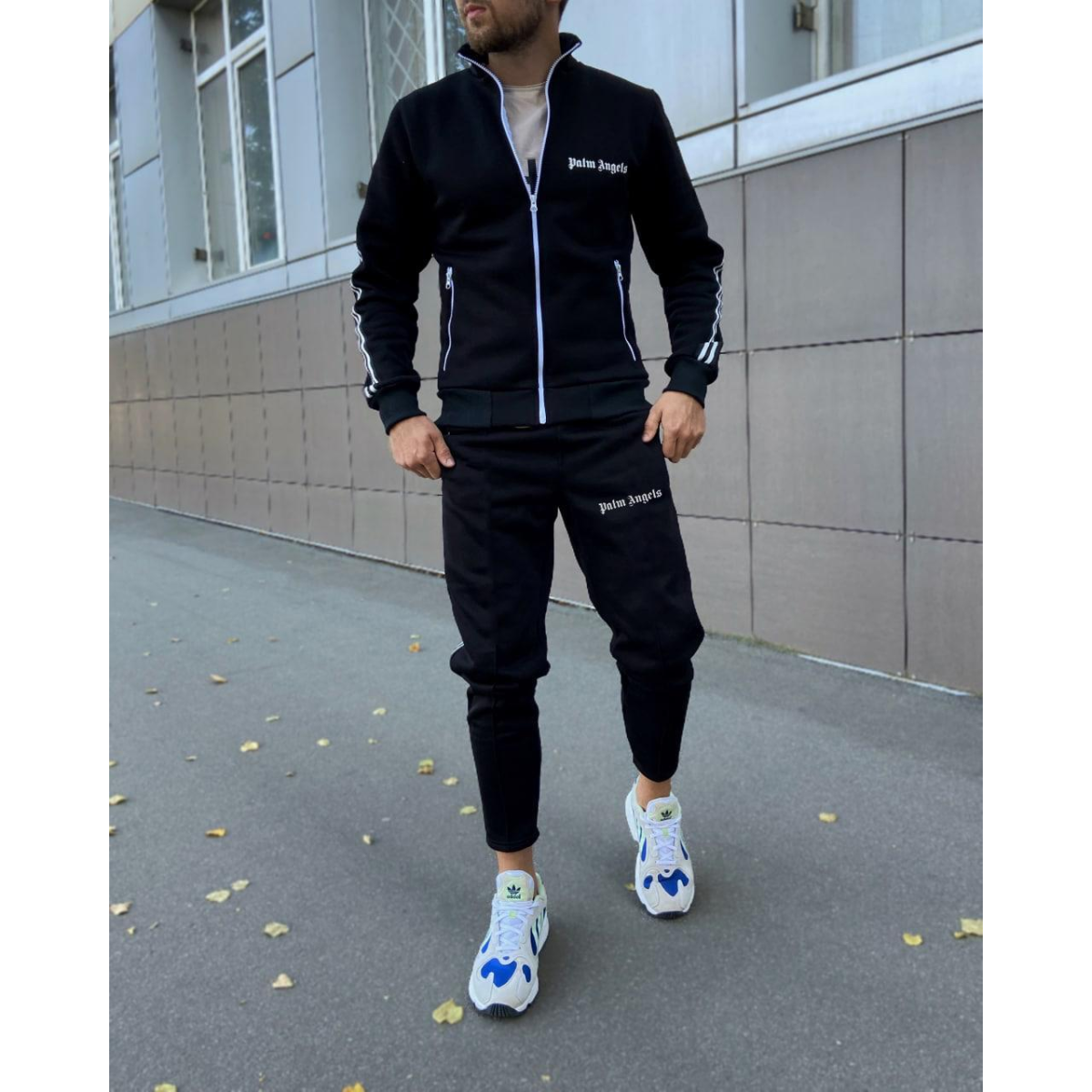 Костюм : кофта+штани тринитка Palm - Lines black