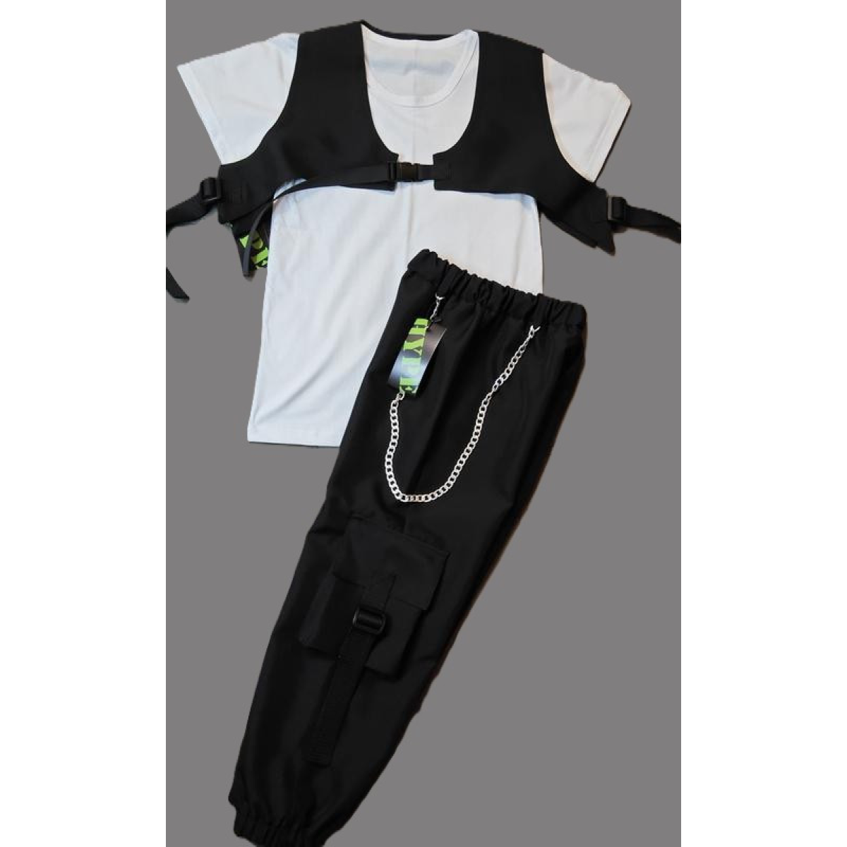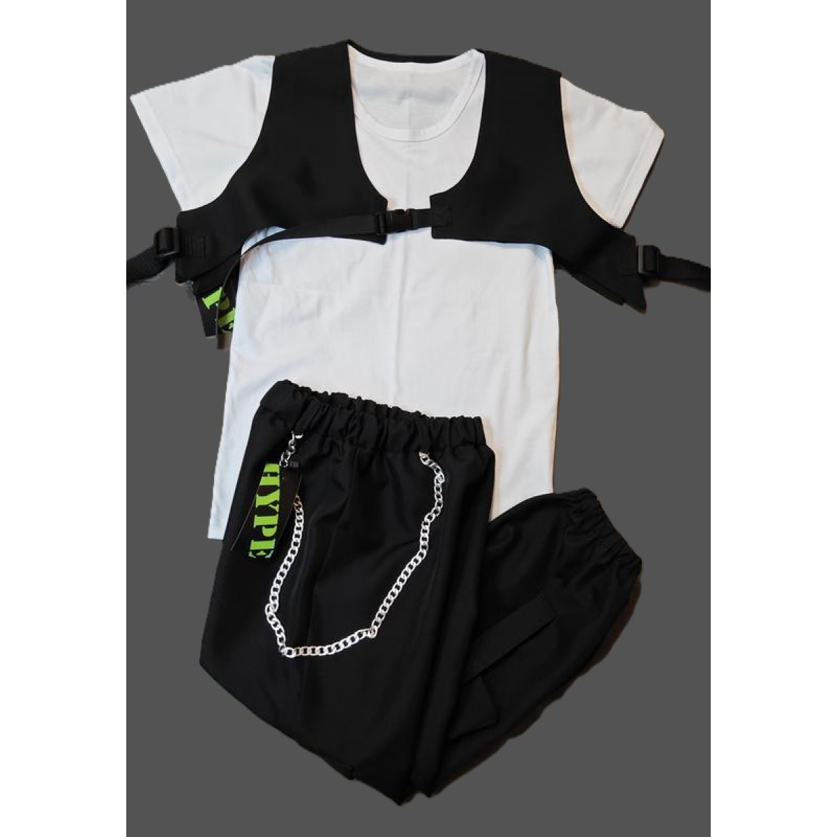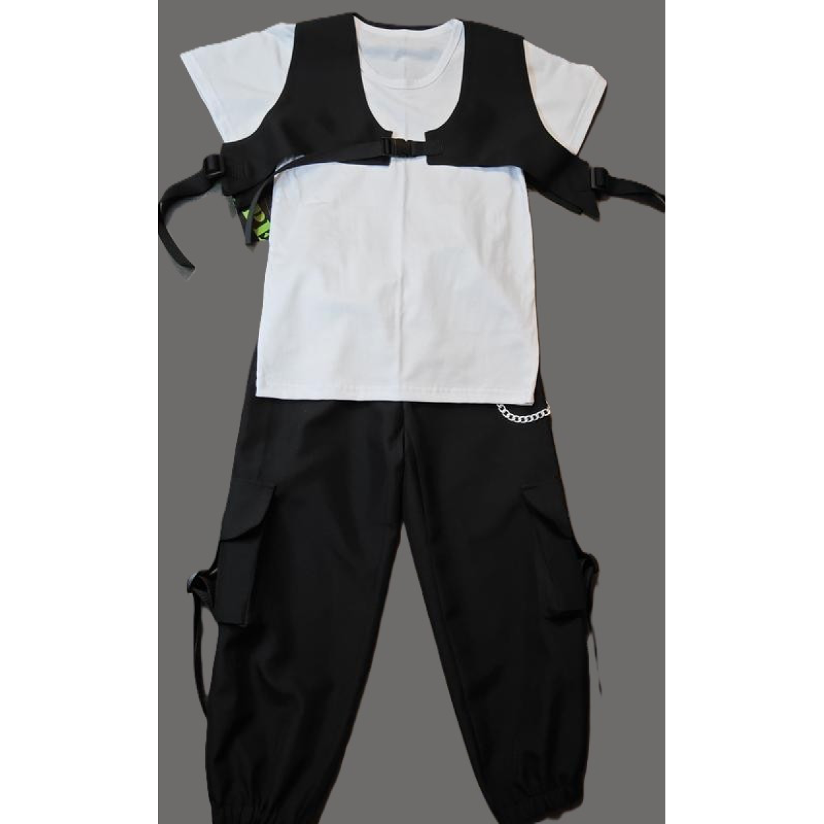 розмір 128 штани: довжина штанів 80 см ширина по поясу (резинка) 29 см розтягується до 45 см ширина по стегнах 50 см футболка біла довжина футболки 59см ширина футболки 39 см жилет довжина 26 см ширина 56 см